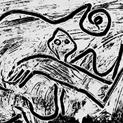Use of scratching techniques in a painting process fully integrates disparate compositional parts as if in one unifying stroke. Handmade artworks are an important part of digital culture.